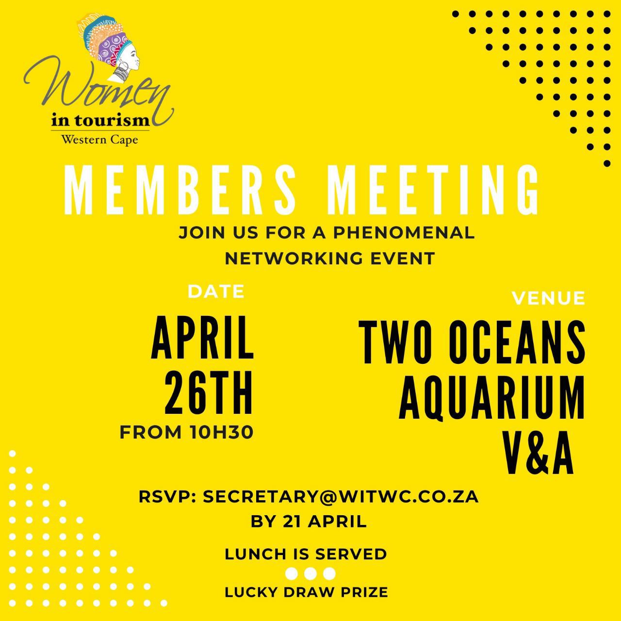 Join us for an exciting opportunity to connect and engage with Women in Tourism Western Cape at our upcoming member meeting on the 26th of April at 10:30 am. As an organization, we are dedicated to empowering and uplifting women in the tourism industry, and this meeting is a chance for us to come together and discuss important issues, share insights and experiences, and build a supportive community.  Don’t miss out on this fantastic opportunity to connect with like-minded individuals and be a part of our vibrant community. Rsvp now to secure your spot!